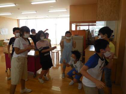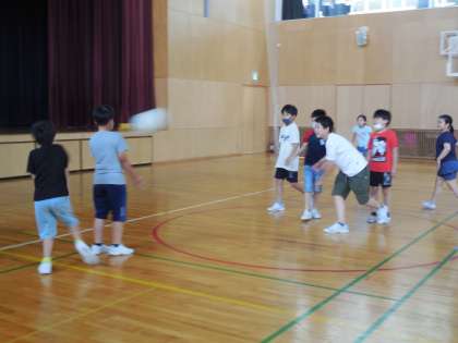 今日から8月の校時が始まりました。昼休憩は体育館や図書室、多目的教室で、思い思いに休み時間を過ごしました。多目的教室では少人数で帽子取りゲームやじゃんけんをして遊んでいました。体育館では、男女仲良くドッジボールをしました。