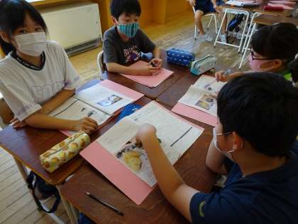家庭科の学習では、ほうれんそうのおひたし、ゆでいもの実習を終えて、意見交換をしました。「火加減のタイミングが難しかった」「普段、調理してくれる家の人に感謝したい」と感想を述べた子供たちでした。