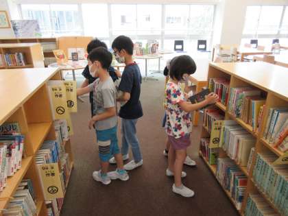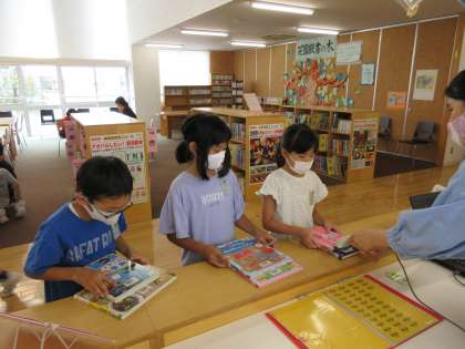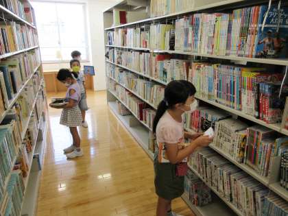 どんな本がおもしろいか友達に聞いたり、夏休みに挑戦したいことを考えて本を手に取ったりしていました。