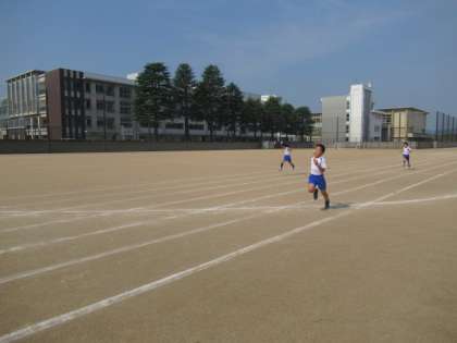 今日は100m走の記録をとりました。最後まで全力で走りきる子どもたちでした。