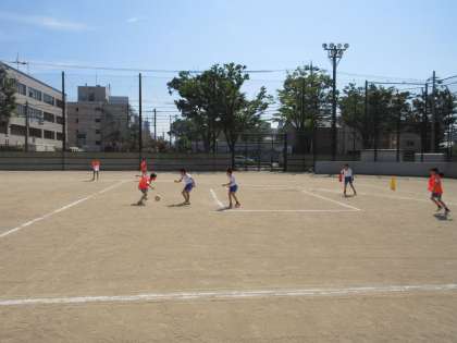 パスやドリブルをチームで練習し、どんどんサッカーの動きになってきました。試合では、パスをもらう位置取りやマークの付き方も考えて作戦を立てています。