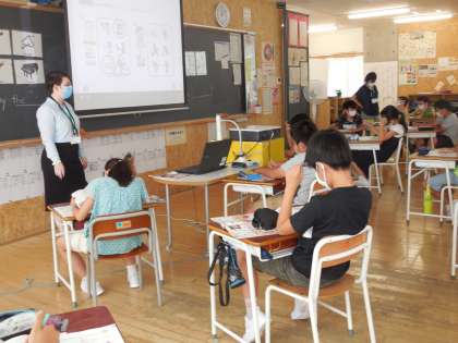 今学期はユニット4から学習を再開しました。「I can 〜.」や「I can't〜.」の表現を使って、自分のことを友達に紹介できるよう練習をしています。