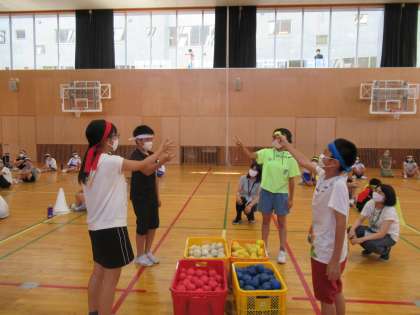 集会の第1部では、団のかけ声合戦を行いました。団長がじゃんけんで順番を決めました。そして、かけ声を団役員が中心になって考え、団のメンバー全員で声を合わせました。
