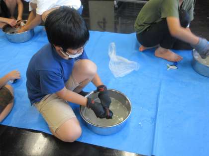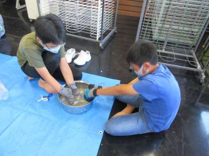 自分の靴下を手洗いしました。汚れの目立つ部分はつまみ洗いしたり、しわを伸ばしてから干したりと、学習してきたことを生かすことができました。子供たちは、きれいになった靴下を見て、気持ちいいと話していました。