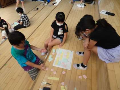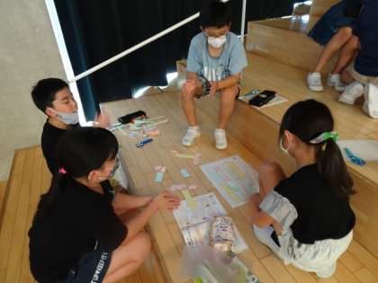 4年生は音楽科の時間に、3種類のリズムを組み合わせてリズムつくりに取り組んでいます。自分たちのイメージに合うようにグループの仲間と相談したり、リズムを打って試したりしながら、楽しく取り組んでいました。