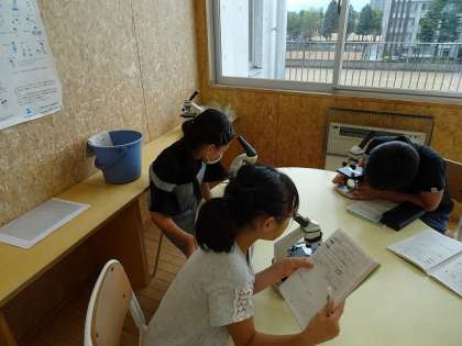 理科では、顕微鏡の使い方を学習し、実際にやってみました。観察対象を正しい倍率で見れたときは、うれしそうにしていた子供たちでした。