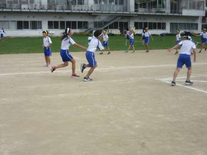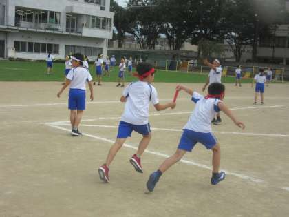 今日の体育は、グラウンドでリレーをしました。団ごとに走順を決め、バトンパスの練習をしました。スムーズにバトンがつながるよう、これからしっかりと練習をしていきたいです。