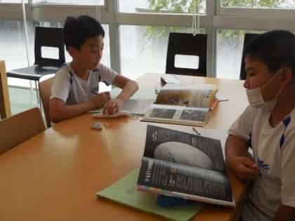 5年生は、環境問題について調べ学習を行っています。今日は、コンピュータ室と図書室で、それぞれの課題を追究しました。