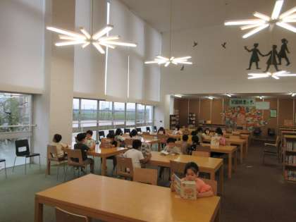 今日は、のびのびタイムに図書室で読書をする子どもたちが多くいました。