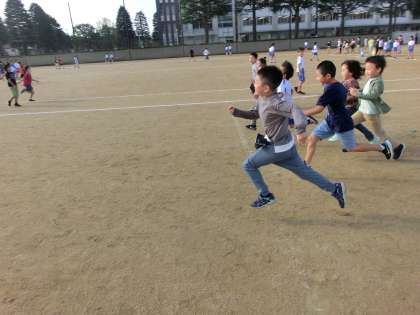 10月1日から、2年生も朝のトレーニングを開始しました。待ちに待った朝トレに、子供たちは大喜びでグラウンドに向かいました。グラウンドでは、直線コースを走ります。相手をどんどん変えながら、楽しそうに何度も何度も走っていました。