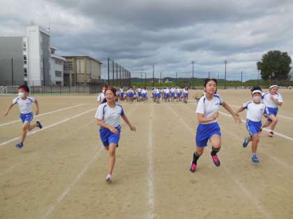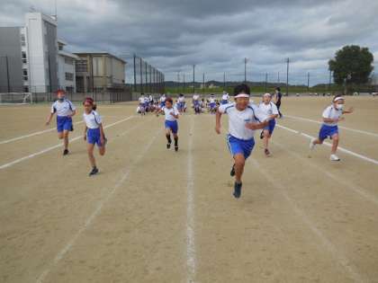 今日は、運動会に向けて100mを走りました。スタートダッシュの練習をした後、各団ごとに走りました。「○○さんには負けないぞ!」と気合い十分に走る姿が多く見られました。各団、色別リレーの選手が決定しました。