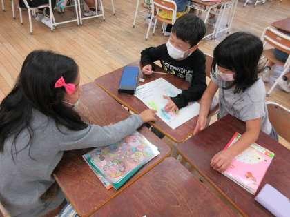 3年生のみんなが読書に親しめるように、おすすめの本を紹介するという目的で、班の友達と話し合いました。