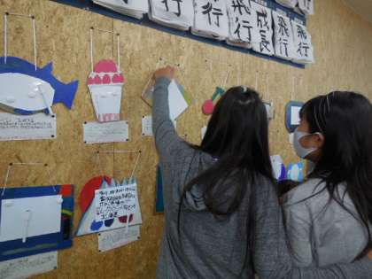 図工で製作したホワイトボードの鑑賞を行いました。他クラスの作品も見て回り、たくさんのすてきな作品を鑑賞することができました。