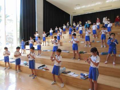 音楽の時間には、「とどけよう この夢を」という曲を歌ったりリコーダーで演奏したりして楽しんでいます。