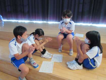 また、手拍子でリズムを打つ音楽づくりもしています。班の友達とリズムをつないで発表しました。