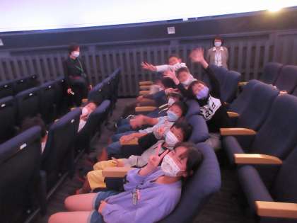 最後にプラネタリウムを見ました。星について詳しいお話をたくさんしていただきました。博物館の方のクイズに答えながら、プラネタリウムを楽しみ、星や惑星についての興味を高めている子供たちでした。
