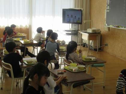 給食時間にテレビ放送を真剣に見ている子供たちの様子からも、運動会に向けての気持ちの高まりを感じます。