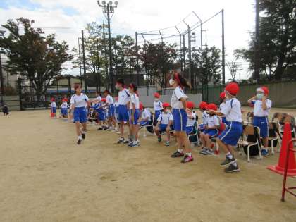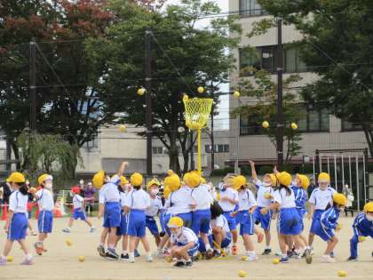 運動会2(1年生) 公開日 2020/10/26 更新日 2020/10/26 1年生のページ 運動会「玉入れ」では、練習の成果を発揮しようと、ねらいを定めて玉を入れました。だんだん入る数が増えてきていた1年生。かごをしっかりと見て、一生懸命に玉を投げました。 運動会が終わった後、6年生から「がんばったね」と声をかけてもらいました。