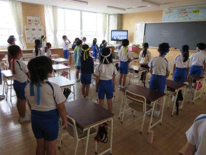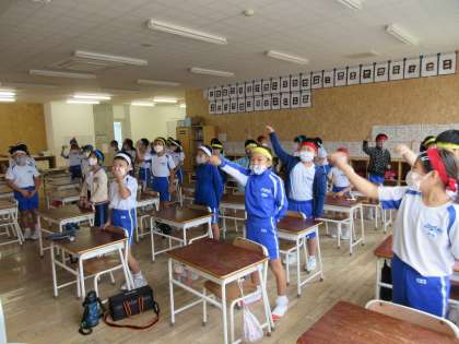 本日、中学年の運動会を行いました。競技は午後からでしたが、午前に行われた開会式にも、テレビ放送を通して参加しました。大きな声で「ゴーゴーゴー」を歌い、気合い十分の子供たちでした。