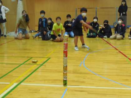 空き缶積みでは、丁寧に積み上げる真剣な顔や空き缶が倒れて起きる笑い顔が、とても印象的でした。子供たちが企画・運営する集会を、これからもどんどん行っていく予定です。