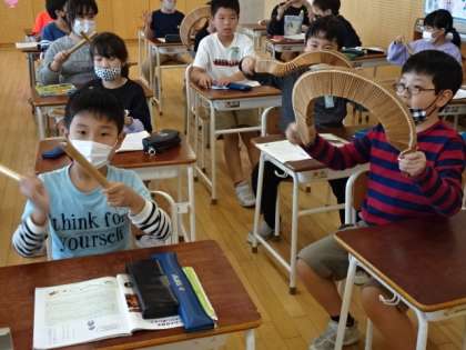 4年生は、音楽科で「こきりこ節」を学習しました。「ささら」や太鼓のリズム演奏を体験しました。「ささら」でいい音がなるように試しながら楽しく演奏しました。