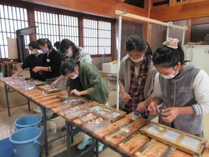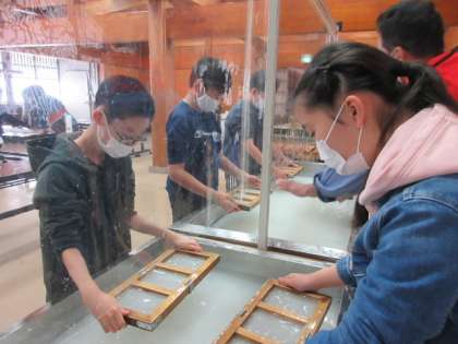白団は午後の始めに和紙の紙すき体験をしました。