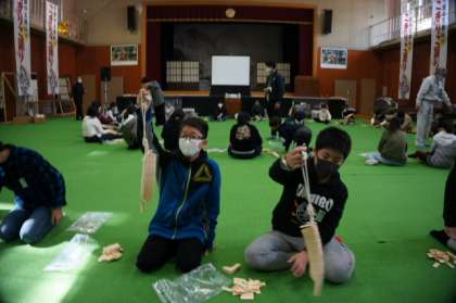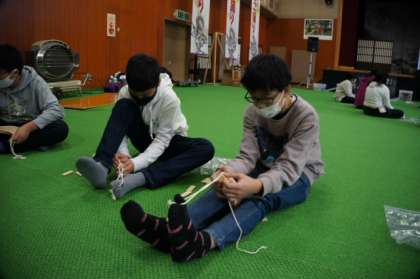 青団の午後からの活動はささら編み体験とこきりこ民謡体験をしました。