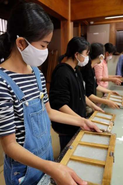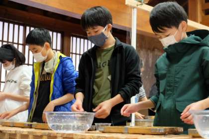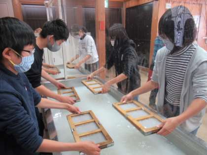 赤団は最後に和紙の里で紙すき体験をしました。和紙とのりの冷たい感触がおもしろかったようです。