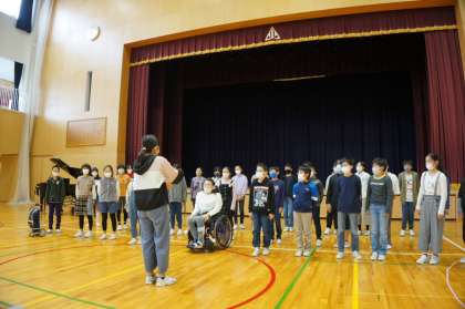 今日、学年でミニ合唱コンクールを開催しました。学級ごとに、音楽で学習している「星の世界」を合唱しました。