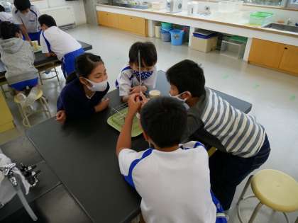 理科では物の体積と温度について学習しています。今日は水は温度によって体積が変化するのか確かめました。実験から、水は温度によって体積が変わることを実感した子供たちです。