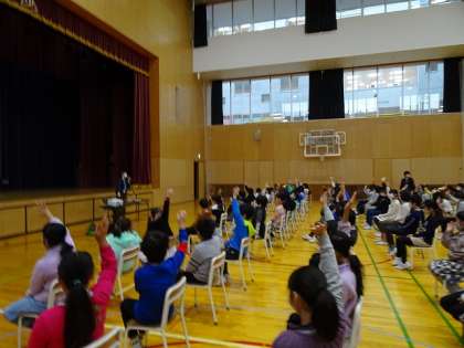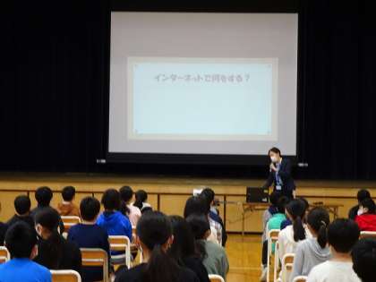 ネットトラブル防止教室では、何気なく発した情報によって、思いがけないトラブルに巻き込まれるという怖さを教えてもらいました。子供たちは自分事ととらえて、一生懸命話を聞いていました。