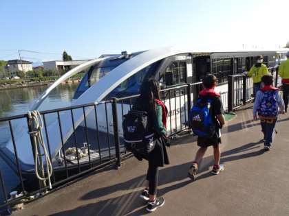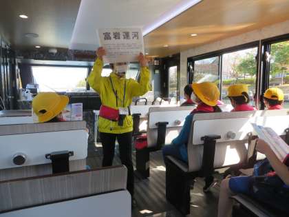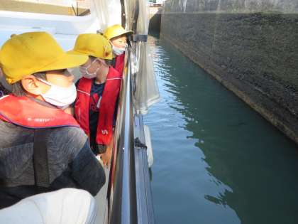 社会科では、冨岩運河の歴史や、仕組みについても学習しました。環水公園から船に乗り、水のエレベーター体験をしました。さらに、さわやかな秋晴れの中、船から野鳥や魚を見ることができて、子供たちは大喜びでした。