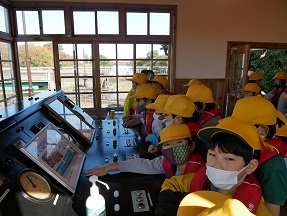 水のエレベーター体験をした後、操作室の見学をしました。昔は泊まり込みで作業をすることもあり、お風呂やトイレ、和室もありました。水のエレベーターの扉を上から見学することもできました。