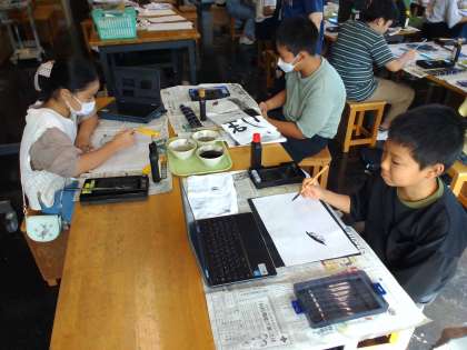 墨の濃淡を意識したり、筆の運びを工夫したりしてのびのびと描いています。