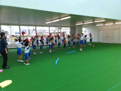 赤団は、色帽子を使った振り付けや応援歌の練習に取り組んでいました。1年生から4年生は前回よりも振り付けを覚えていました。
