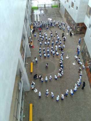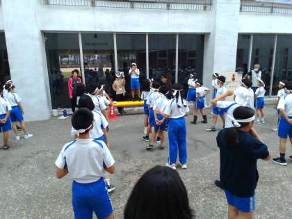 白団は、パサージュで練習をしていました。団リーダーが、先頭に立って説明をしたり、6年生が低学年に並び方や振り付けを教えたりしていました。