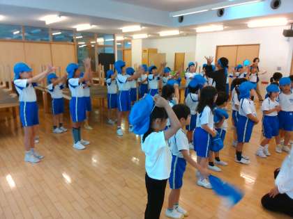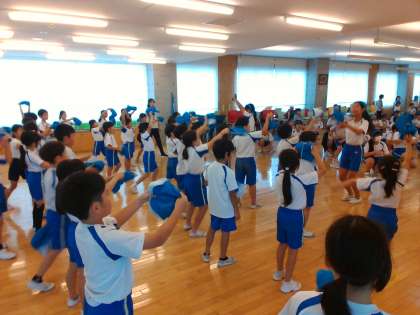 青団も、団リーダーが中心となって下級生に振り付けを教えていました。6年生は、わかりやすいように何度もお手本を見せたり、細かく声をかけたりしていました。下級生も、一生懸命に練習しています。