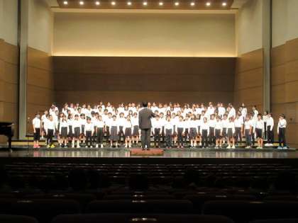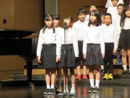 今日の第7区域連合音楽会では、5年生が練習を重ねてきた合唱を発表しました。ホール全体に優しく美しいハーモニーが広がり、開場からは大きな拍手が起きました。