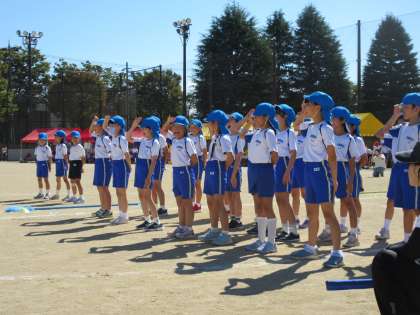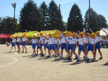団のみんなで考えた意気込みで、気合を入れて、本番スタートです。みんなで協力して芝園小学校にハリケーンを巻き起こしました。