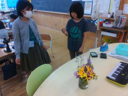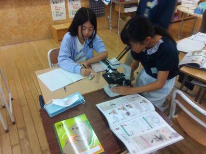 実際の花から花粉を取り、ピントを調節し、倍率を変えながら観察しました。