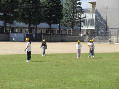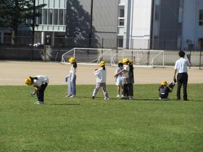 手に手にかがみをもって、太陽光を反射させ、光の進み方を観察しています。今日は絶好の観察日和です。