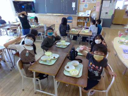 早く食べたいな(2年生) 公開日 2024/10/18 更新日 2024/10/18 2年生のページ 2年生はさすがに配膳が早くなっています。 自分の分を取り終えた子供から席に座って、みんなが取り終えるのを待っています。 「おなかすいたあ」 「これ、すきなやつ」 と、うれしそうです。 どれくらいの量なら食べられるか、ここでも担任と相談しながら決める子供の姿がありました。