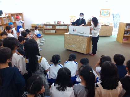 今日は、かがやきタイムに図書ボランティアの方の読み聞かせがありました。ハロウィンの衣装に仮想されたボランティアの方が、様々な種類の本を読んでくださいました。図書室は、大盛況!子供たちはあっという間に物語の世界に・・・