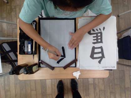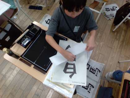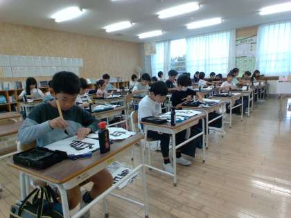 一人一人が手本と自分の文字を見比べながら、課題を見付けるなど、静かな教室で集中して字を書いています。