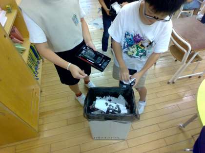 道具を大切に、自分だけでなく誰かの服やみんなの教室の床も汚さないように、最後まで心をつくしています。