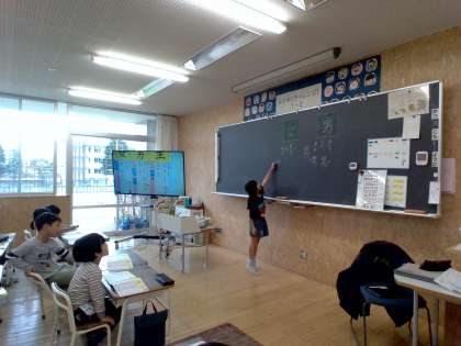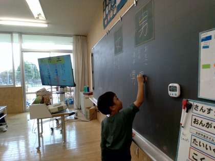 授業はいつも先生が前に立って教えるばかりではなく、またペアやグループで話し合うことだけではなく、子供が黒板の前に立って、意見を言う、考えを伝える場面もあります。