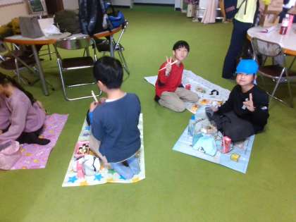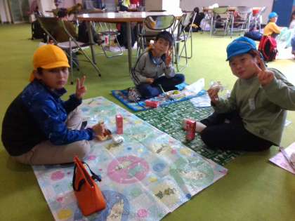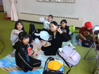 待ちに待ったお弁当タイム、天気が不安定なので今回は予定を変更して室内で食べました。午後の活動に向けて、エネルギーチャージ!