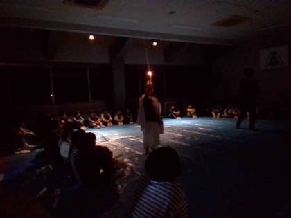 火の女神から営火長が火を受け取り、子供たちにさらに渡されました。