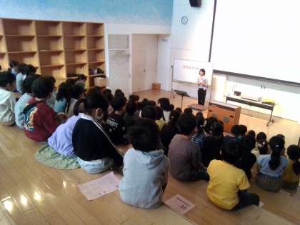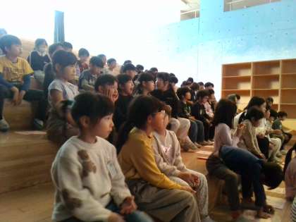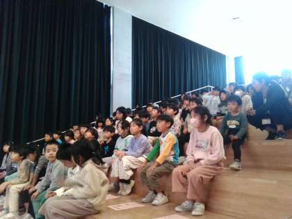 1年生が楽しみにしている遠足が近付いてきました。表現の舞台で学年集会を行い、遠足の目当てや日程を確認しました。シアターでの映画鑑賞やパズルづくり、遊具での遊び等、さまざまな活動にわくわくしているようです。当日は晴れるといいですね。