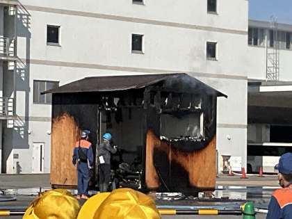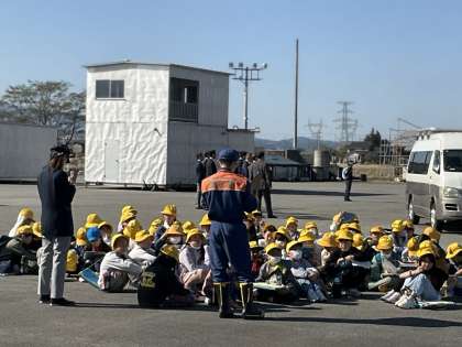 消防車が来て、実際に隊員の方が鎮火されるまでの様子を見て、「さっきのあの装備でやるの」「すごいね」「煙が真っ黒」とつぶやく子供、「怖い」と見るのをやめる子供、と様々でした。